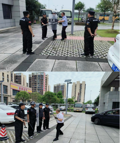 在实战演练环节,开展保安技能训练,围绕队列、站姿、行姿及手势等方面进行了培训并演练,实时纠正队员的不规范动作,组织防爆模拟演练,掌握甩棍、防爆盾牌、钢叉等器具的规范使用方法。