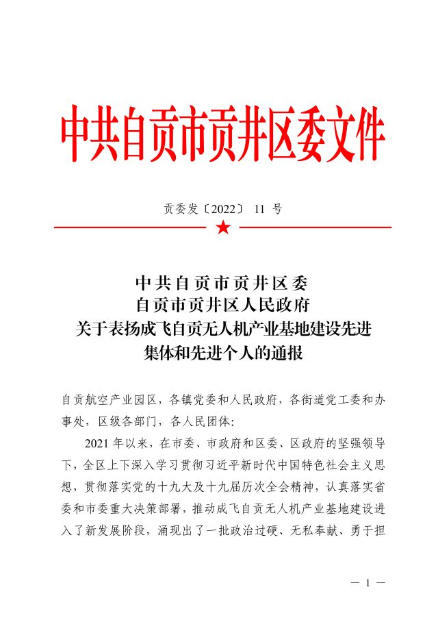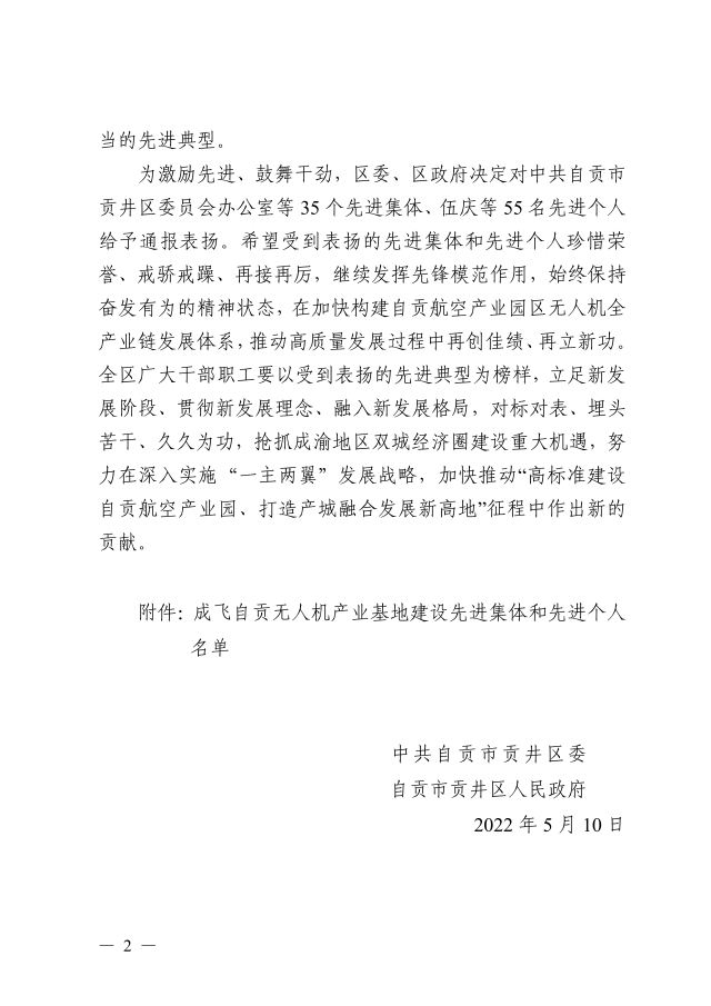 贡委发〔2022〕1(成飞无人机基地建设先进集体个人)